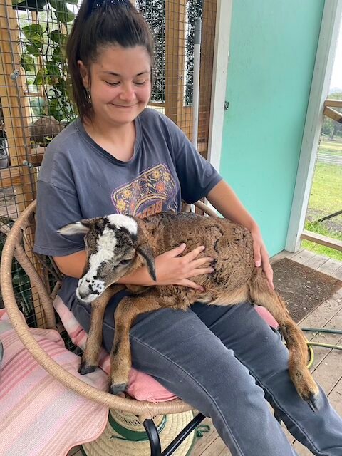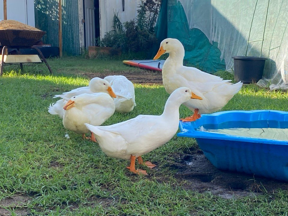 Our farm is open to all, with gardens full of organic vegetables and paddocks of happy rescued animals, including horses, goats, a pony, chickens, and ducks